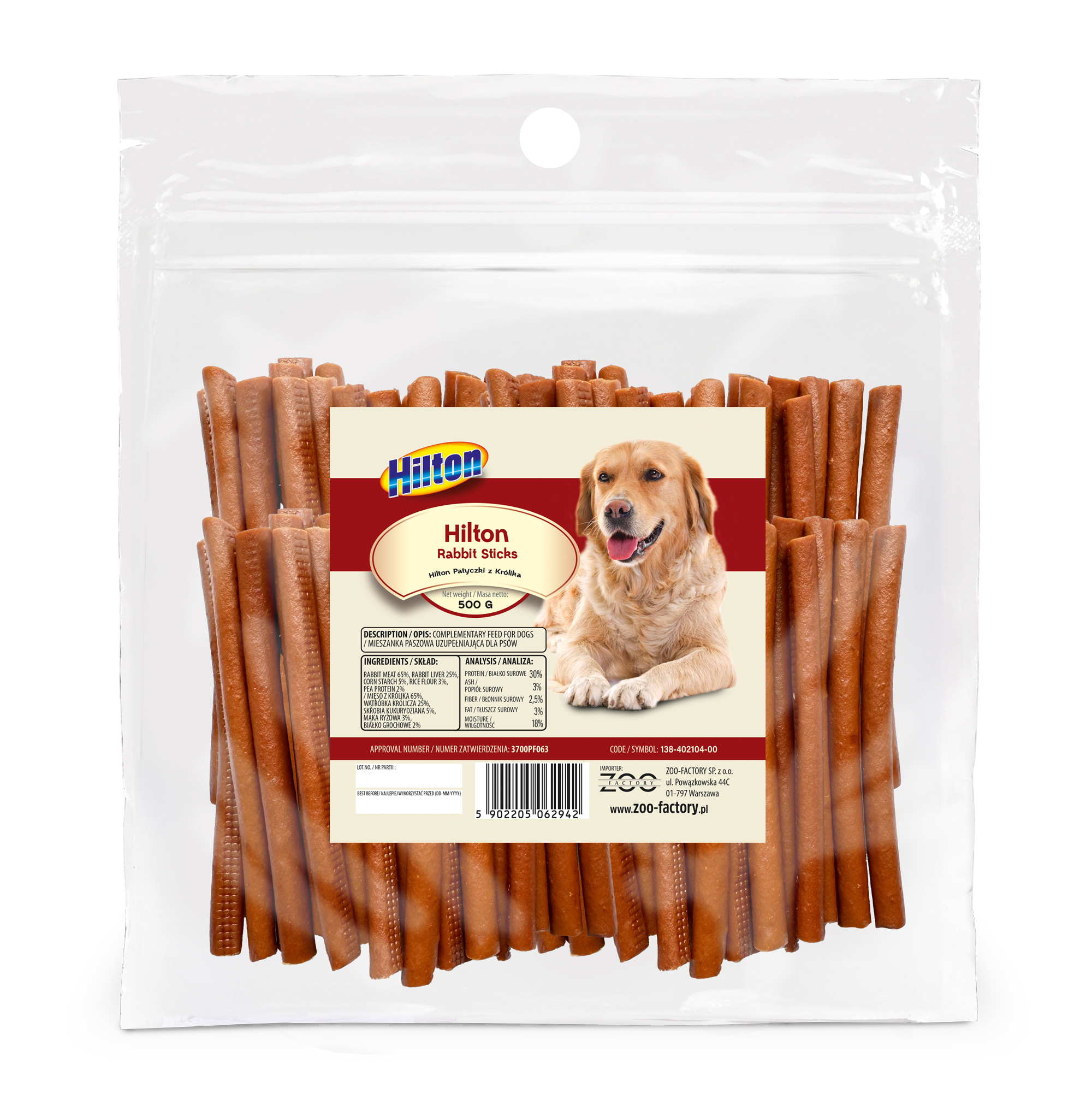 - 1x PATYCZKI MIĘSO Z KRÓLIKA ZDROWY PRZYSMAK NAGRODA SMACZEK PRZEKĄSKA 500G (2942) – oryginalne opakowanie